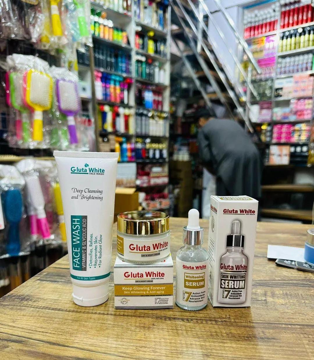 1. Gluta White Face Wash: A cleansing formula designed to remove dirt and impurities while promoting skin brightness. It may contain ingredients like glutathione, which is known for its skin-whitening properties.